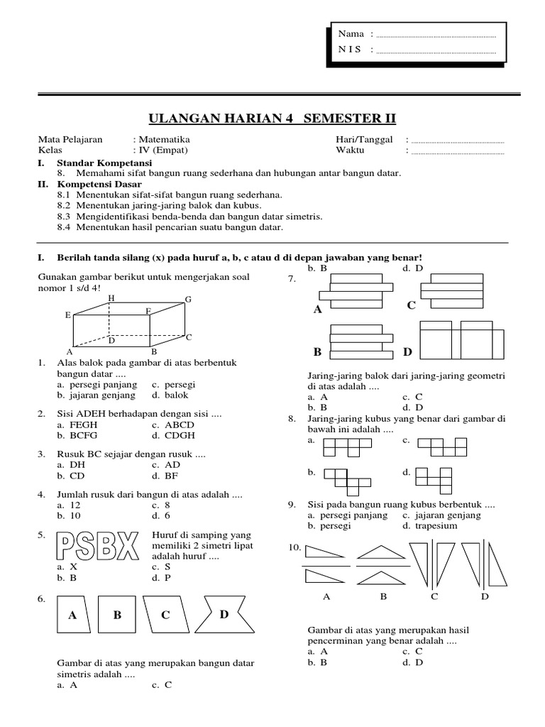 Soal Matematika Kelas 4 Sd Bab 10 Bangun Ruang Dan Kunci