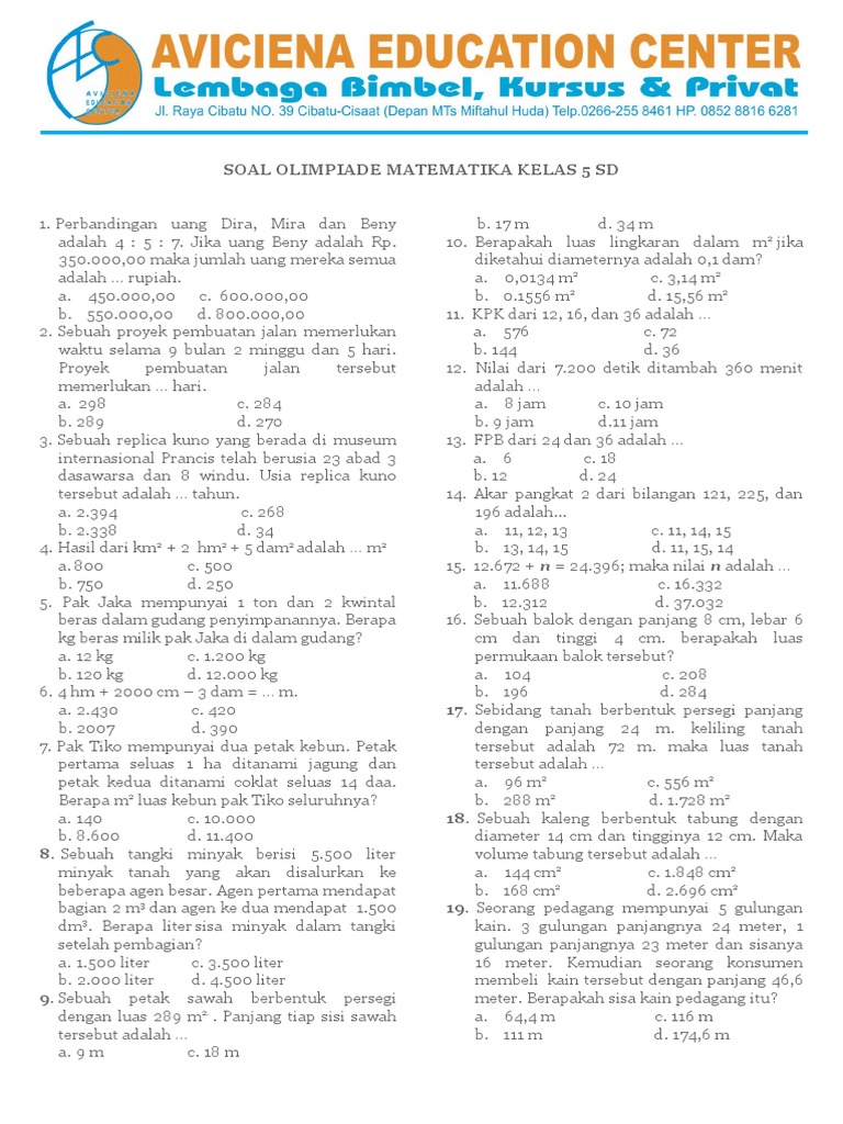 Kumpulan Soal Matematika Kelas 5 Sd Semester 1 Dan 2
