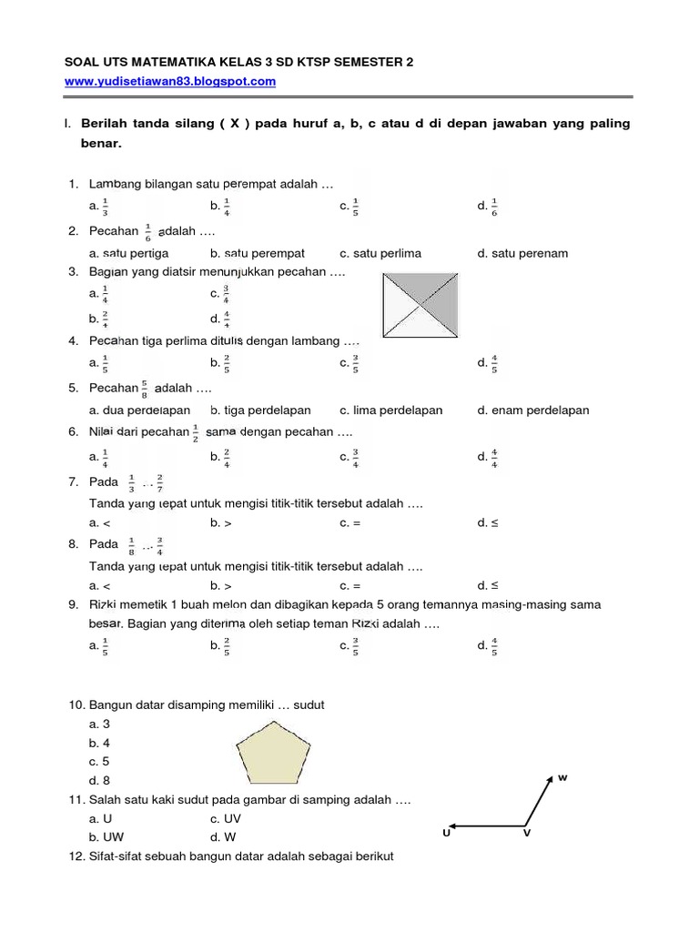 Soal Uts Ktsp Matematika Kelas 3 Sd Semester 2