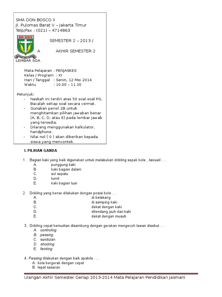 Soal Uas Penjas Kelas X Smt Genap 2014