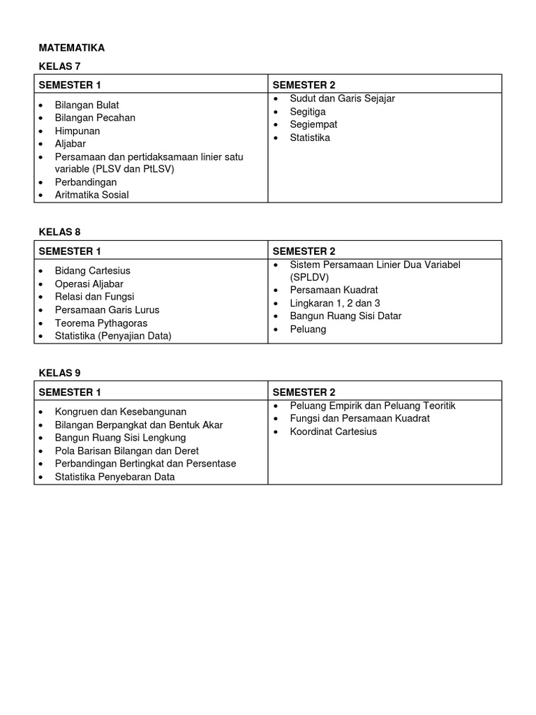 Kisi Kisi Ulangan Semester Ganjil Bersama Smp Mts Se