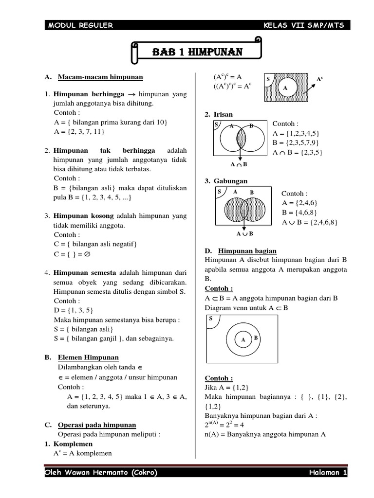 Soal Matematika Smp Kelas 7 Himpunan Semester 2 Warung Education