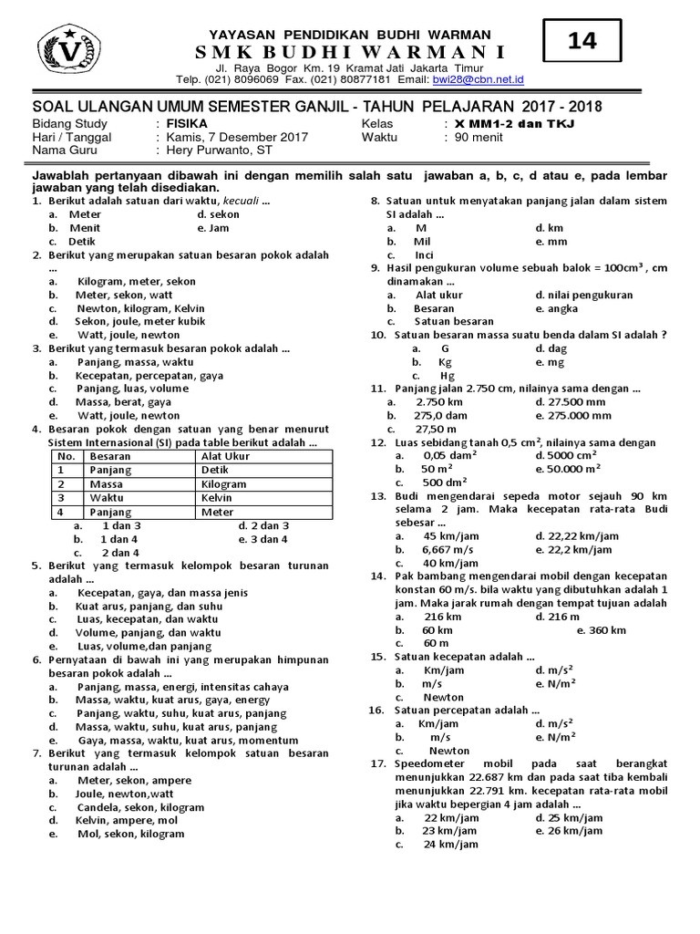 Soal Uts Fisika Kelas 10 11 12 Smk Mak Semester 1 Ganjil
