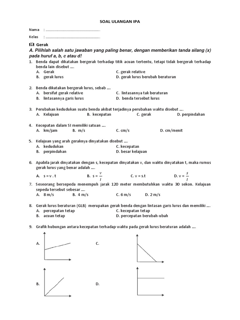 Contoh Soal Ulangan Ipa Kelas Viii Smp Mts Materi Gerak