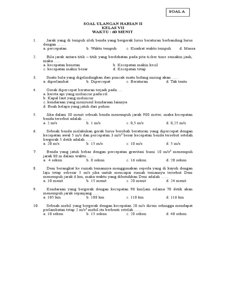 Soal Pilihan Ganda Fisika Smp Kelas 7 Tentang Gerak Lurus