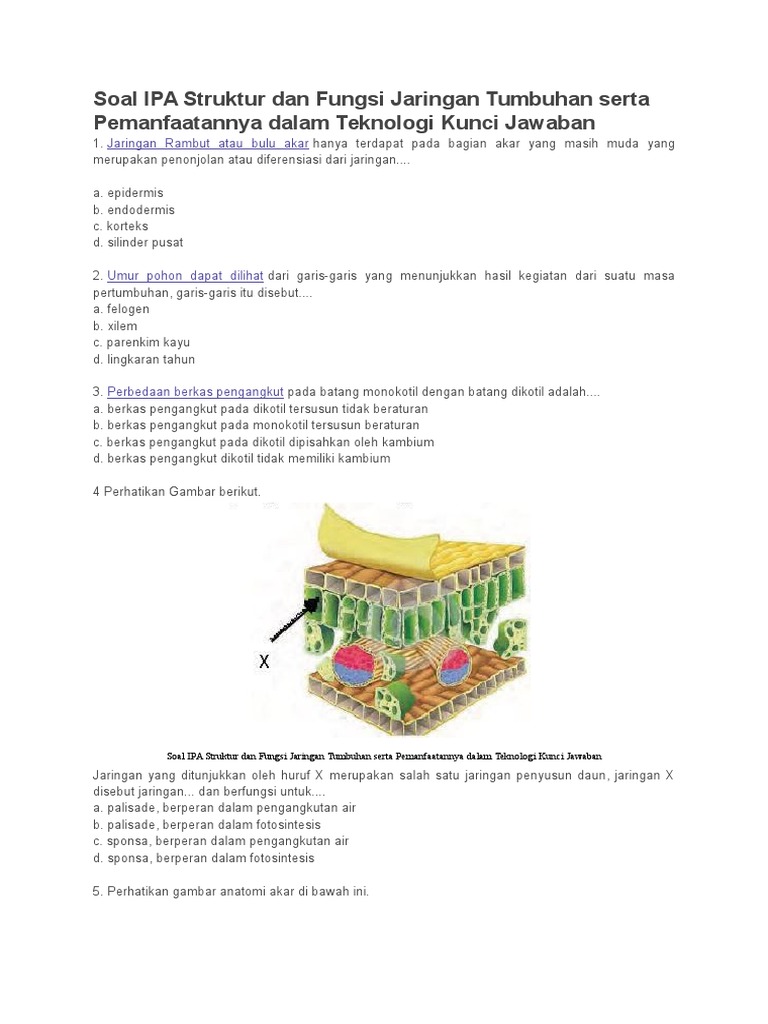 Soal Dan Jawaban Biologi Tentang Jaringan Pada Tumbuhan Dan