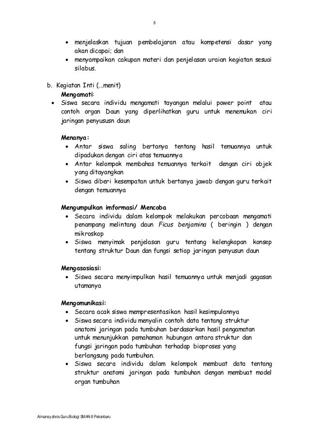 Rpp Jaringan Tumbuhan Kelas Xi Kurikulum 2013