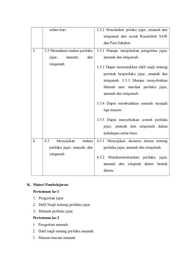 Rpp Bab 3 Tenang Dgn Jujur Amanah Dan Istiqamah