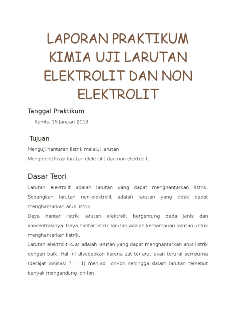 Laporan Praktikum Kimia Uji Larutan Elektrolit Dan Non