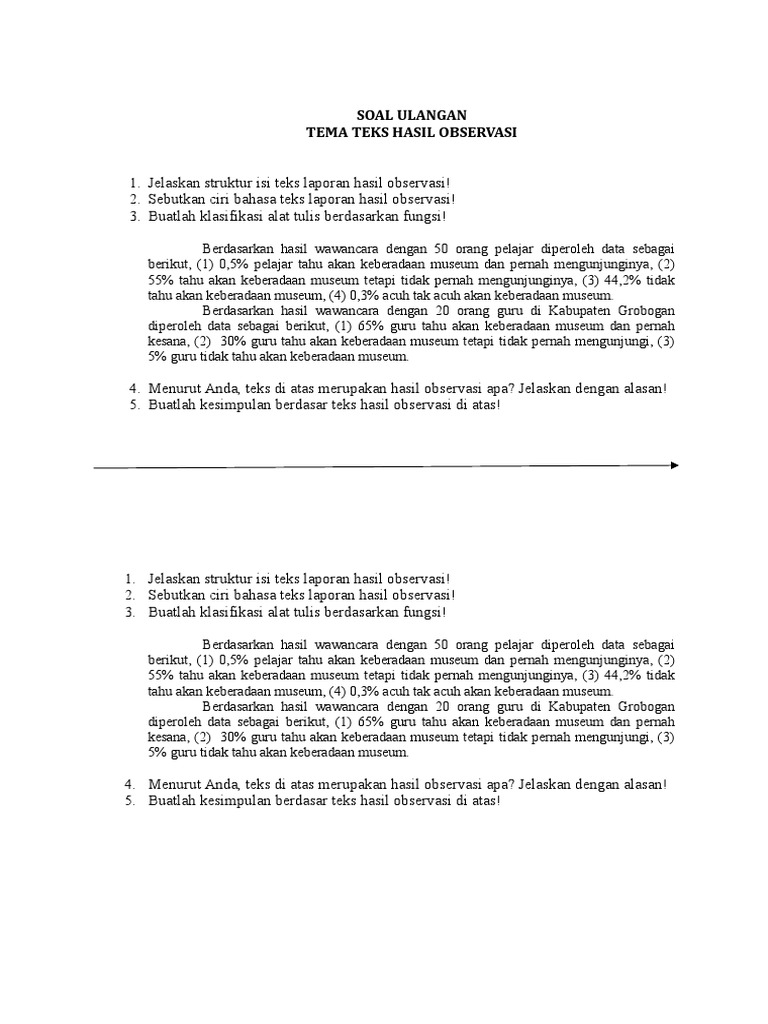 Contoh Soal Teks Laporan Percobaan Bahasa Indonesia Smp