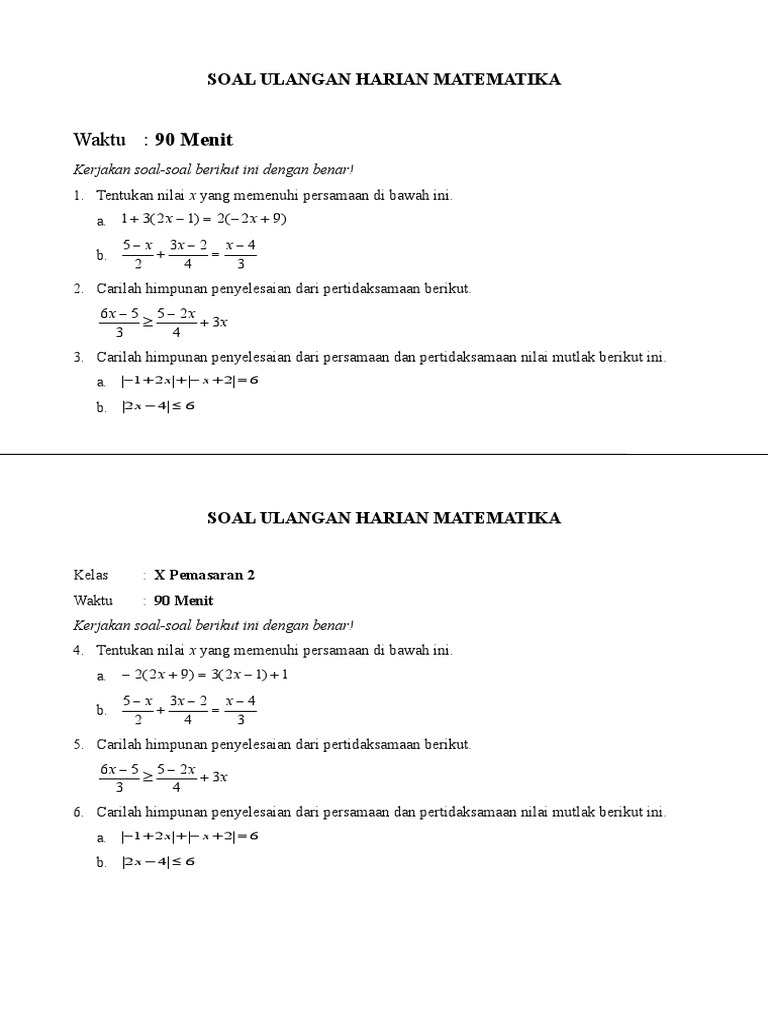 Soal Ulangan Harian Persamaan Dan Pertidaksamaan Nilai