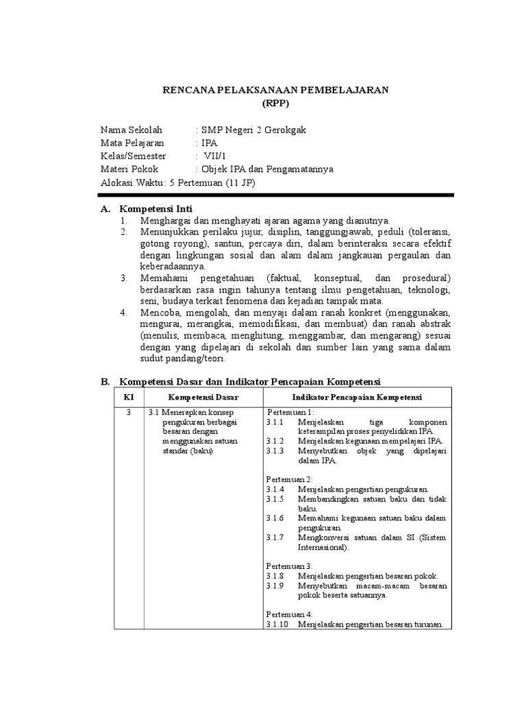 Rpp Ipa Kelas 7 Bab 1 Objek Ilmu Pengetahuan Alam Dan