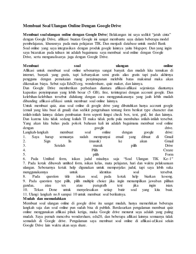 Membuat Soal Ujian Online Cukup Dengan Email Gmail