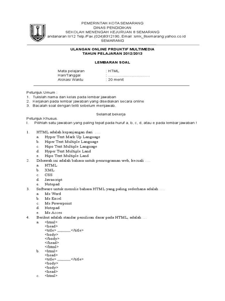 Soal Ulangan Online