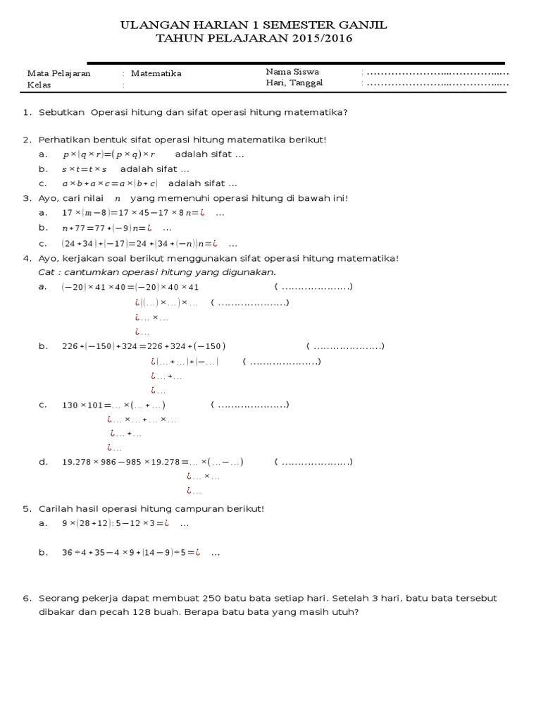 Langsung aja kita pelajari bersama cara melakukan. Soal tesujianulangan ini adalah tentang operasi hitung. Soal mtk sd kelas 6 ini diawali dengan sedikit review.