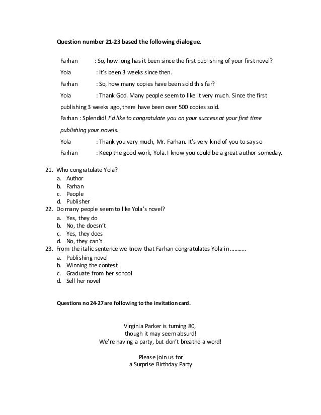 Latihan Soal Ukk Pat Bahasa Inggris Kelas Viii Dimensi