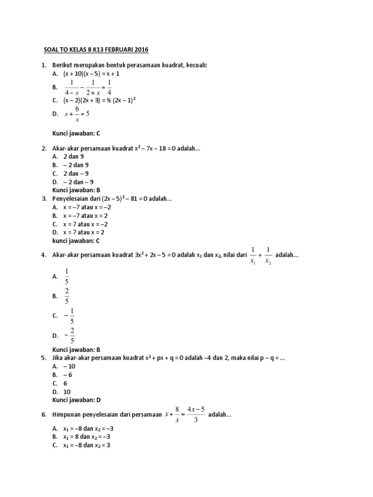 Pelajaran Sekolah Ku Latihan Soal Persamaan Kuadrat Kelas 8 Smp
