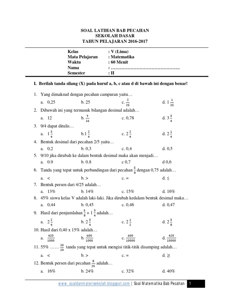 Kumpulan Soal Latihan Uts Pts Kelas 3 Sd Mi Semester 1 2