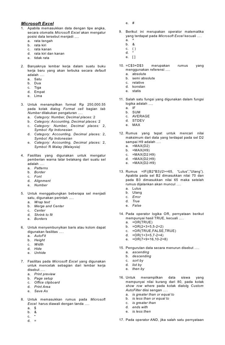 Contoh Format Analisis Soal Ulangan Harian Ma Sma Format Excel