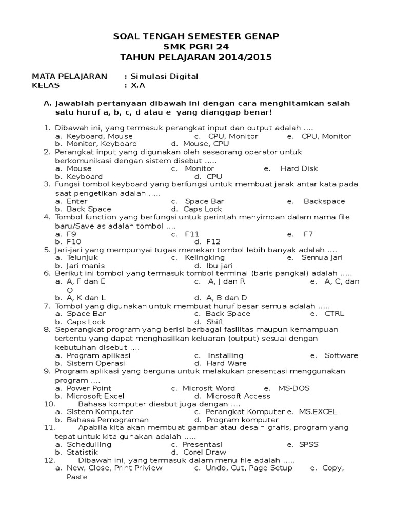 Hasil Gambar Untuk Contoh Contoh Soal Ulangan Semester 1